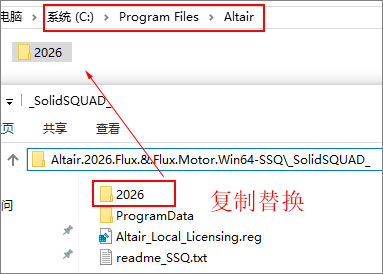 9、再将_SolidSQUAD_激活文件夹下的2026文件夹复制到软件安装目录下替换;
