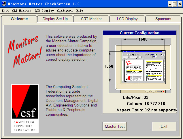 Monitors Matter CheckScreen是一款简单实用、功能强大的液晶显示器检测软件。它包括多项测试,例如:单色测试、焦点测试、几何体测试、电源测试、条纹测试等。可以很好的检测液晶显示器的色彩,响应时间 ,文字显示效果,有无坏点,视频杂讯的程度和调节复杂度等液晶显示器的各项参数,有需求的朋友请下载体验。
