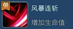风暴连斩——进阶之后攻击次数+1也就是说从原来的三连斩变成四连斩!!!腻害吧,犀利吧,热血沸腾吧。我第一次洗出来的时候激动了好久,后来发现原来并没有什么卵用。(绝对是狂剑最坑的进阶技能之一)