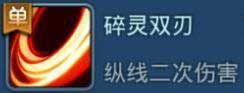 碎灵双刃——进阶之后飞剑飞回对目标再次造成伤害!!!这个进阶必须有!!伤害高不说,还能减防御和法术攻击(注意是法术攻击!!!砍的时候看清楚人来砍好吗!!!)一来一回打中四个人的话。大概能造成3万多的伤害。相当给力!狂剑必备!走