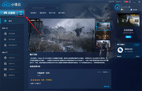 1、点击下图【切换】标志即可来回切换【云电脑】和【云游戏】。