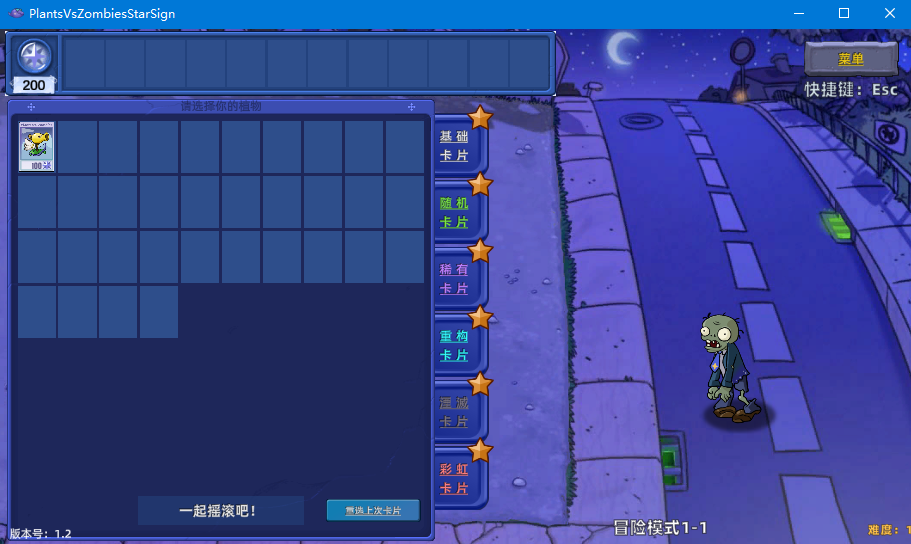 星辰模仿者效果修改为:25%概率生成随机植物,25%概率生成随机魅惑僵尸,25%概率生成随机障碍物,25%概率生成随机僵尸并返还25星光