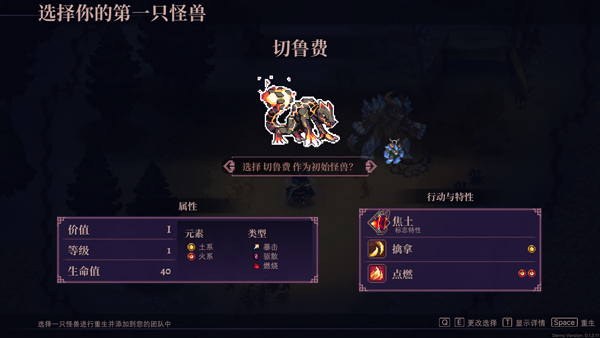 3、接着选择自己的第一只怪兽;