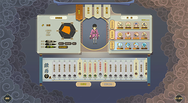 6、主要人物的经历选择,建议好友众多,三阳峰弟子,储备粮。不建议神兵择主,比较鸡肋。