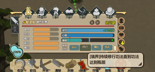 第五种办法,建立修炼堂。修炼堂的加成里包括悟性,气感和心境。需要修炼的小人在修炼堂里能获得很高的心境加成。