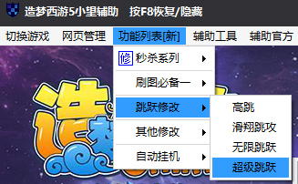 造梦西游5小望修改器是一款全新的辅助工具,一般又称为4399造梦西游5上古天帝篇修改器,能够针对上古天帝篇进行全面的修改操作,包括秒杀功能,刷图修改,跳跃修改,自动挂机,打开关闭声音,清理缓存,亿万点券,逆天秒杀,怪物自杀,一键出怪,一键斩杀,全屏吸物,全屏捡物等等功能,可以更好的帮助玩家轻松的取得游戏的胜利,有喜欢的朋友赶紧免费下载体验吧。