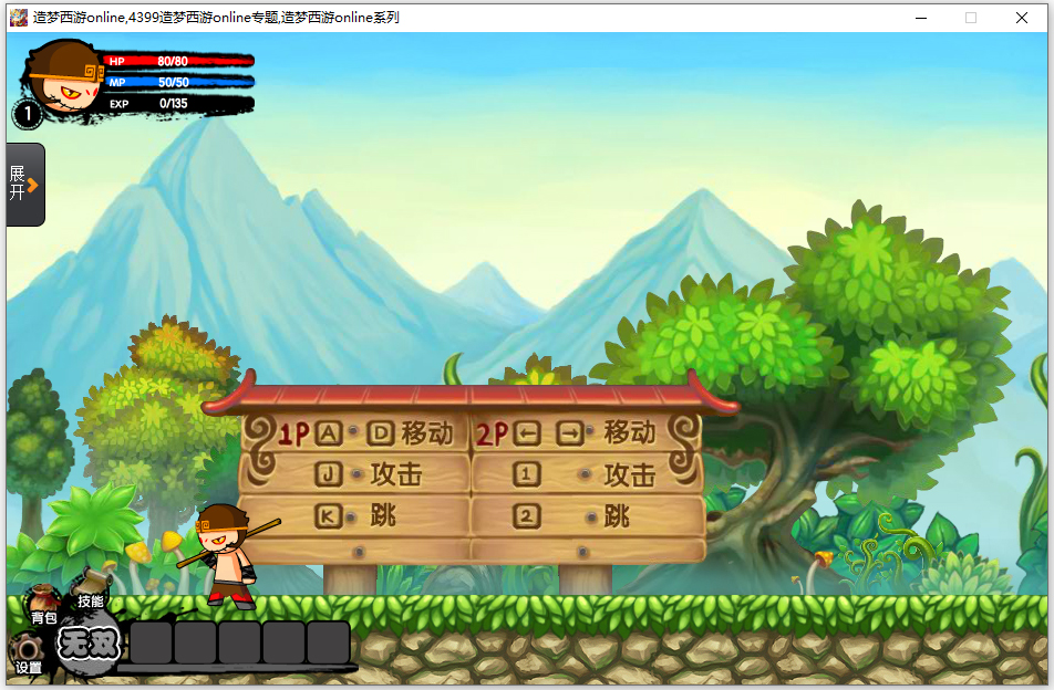 2、支持单人游戏,双人游戏,可以选择孙悟空、唐僧等四大角色;