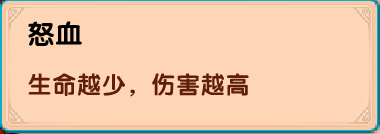 生命越少,伤害越高(每损失最大生命值的2%,增伤1%,已损生命值到达最大生命的80%时可达最高增伤40%)增伤是系数和固伤都享受增伤。