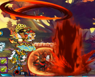小跳滞空,高速旋转钉耙,向前方进行持续的攻击,最后一击将敌人击飞,中途可用跳跃打断,但是空中最多打断两次,总共七段伤害。土魔轮在二转之前有两种用法:一种是低加点攒无双打无双流,一种是高加点(比最高技能等级低1-3级)打输出流。我个人更推荐用低加点打无双流,加点根据蓝量,总共蓝量可以使用十五次左右的土魔轮。二转之后的土魔轮可以点到十级,或者满cd十一级,高战顶战则可以点满土魔轮打输出和竞速。