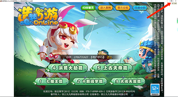 1、打开造梦西游online电脑版,进入游戏主界面,把鼠标移动右上角【正方形方框】图标,显示【最大化】的提示,点击一下,