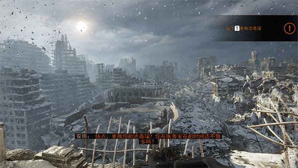 尽管阿托姆的旅行将带他远离受辐射的莫斯科地下,但毫无疑问:整个世界仍然充满了毒素。因此,你仍然需要和你的老朋友,防毒面具保持亲密关系。当然,一个面具仍然能为你提供纯净的空气来呼吸,但是这个数量是有限的,没有什么比听到阿托姆的呼吸变得越来越沙哑和浅,特别是当进入下一个地铁站的入口仍然是一个奥运会选手的冲刺时。祝你好运。