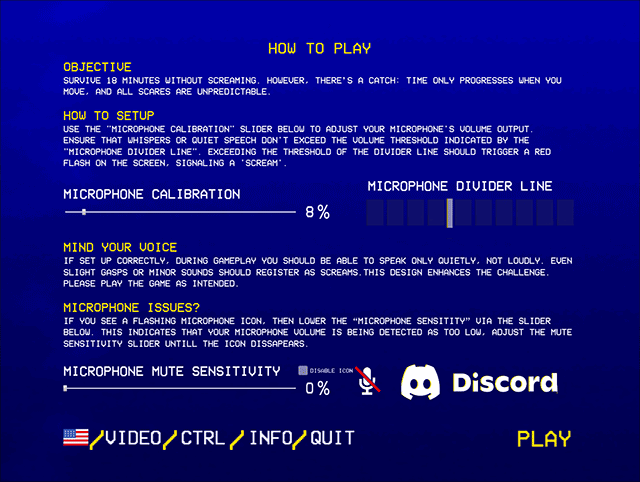在游戏中进行设置。这不仅仅是技术方面的设置,还决定了您所面临的挑战。仅仅是吱吱声或轻微的喘息都会被记录为尖叫,从而导致重新开始。