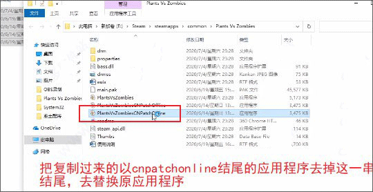 再将以CNPatchOnline结尾的程序去掉这一串结尾,替换原来的应用程序:PlantsVsZombies;