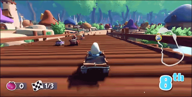 每个蓝精灵都有自己的卡丁车和非常方便的特殊道具,可以帮助您轻松超越对手。