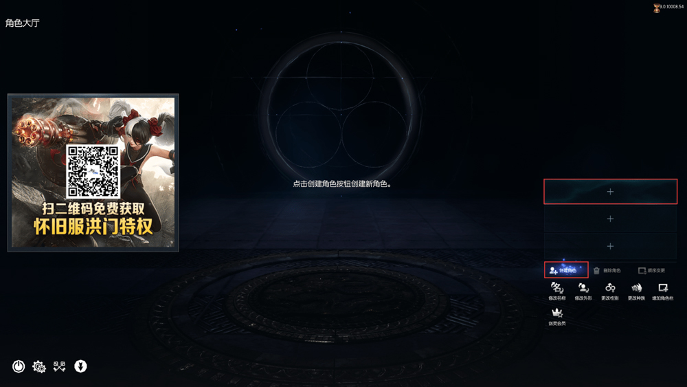 1、登录游戏后,双击右侧加号,或者点击创建角色均可创建新角色
