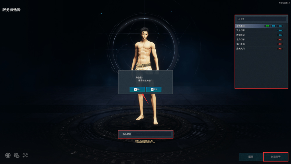 6、应用成功后关闭窗口,点击下一步,接下来就是选择服务器(小区)的界面。选择好服务器,确定名字点击右下角创建完毕,如名字未重复新角色的创建就完成了,最后进入游戏就可以正式开始冒险了。