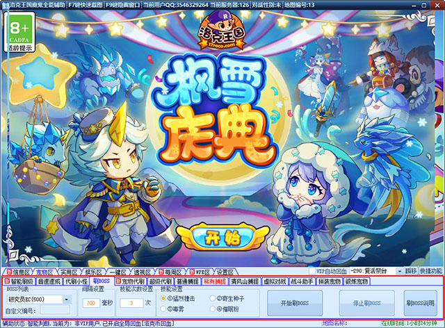 2、人物专区 农场偷菜+送玩具,一键操作区(一键取物71个),一键挖宝,一键呱呱学习,一键炼丹,一键拼装宠物,BOSS刷钱,刷衣赚钱,购买物品,小游戏