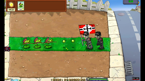 5、进入游戏如图,玩法与原版相同,但植物和僵尸的形象添加二战元素,各项属性也得到改变,玩家需种植植物来抵御僵尸的进攻;