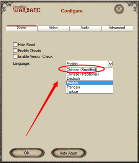 3、在Language中选择第一个选项:Chineses(Simplified),这个是简体中文,另一个Chinese是繁体中文,然后点击OK设置完成