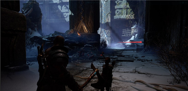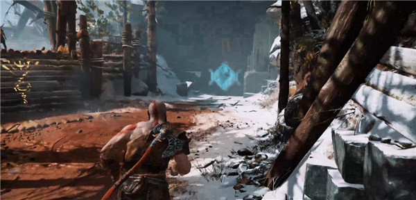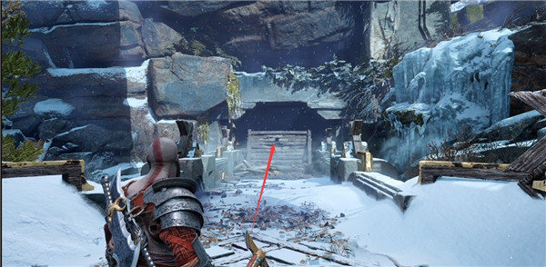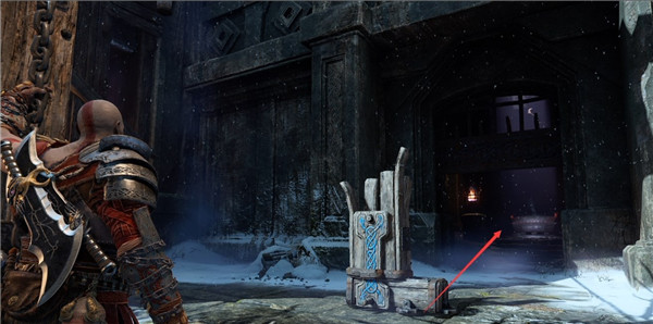 回到神殿内解谜,拉铁链升起门,然后扔斧子把齿轮冻住。