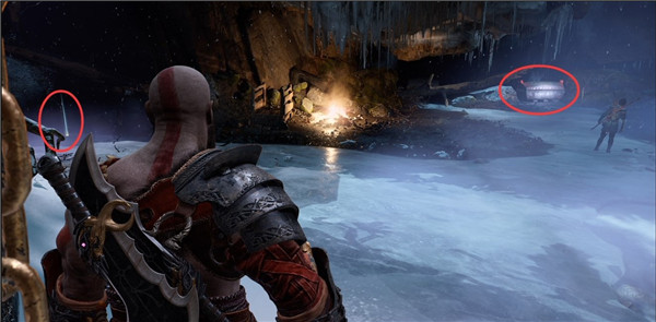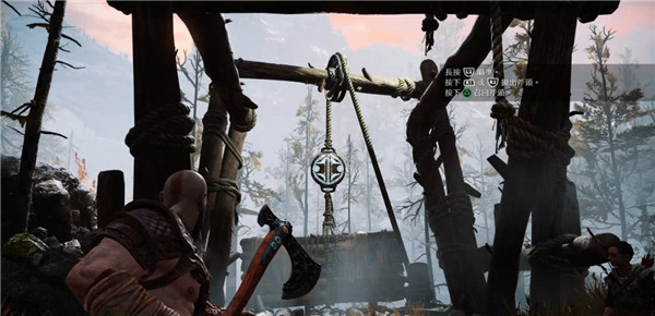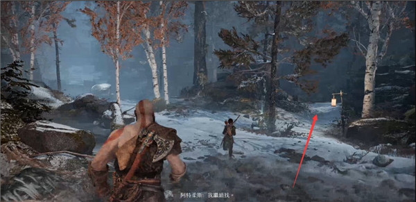 带着有记号的树划船回家,火葬亡妻后,和阿特柔斯一起去狩猎。出发之前,下图右边可捡到【失物寻回】的第一个玩具。