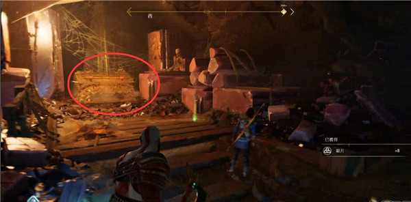 出门左拐有个宝箱,然后爬上铁链,楼上破木板后面有个【巨人神坛】。