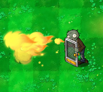铁门僵尸会喷射火焰攻击植物