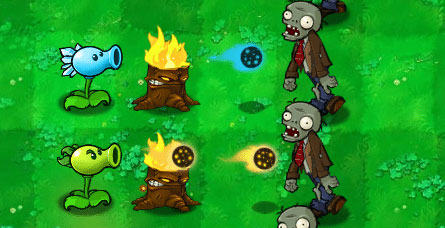 火炬树桩会使穿过的寒冰豌豆变为蓝色的火球,而不是普通豌豆