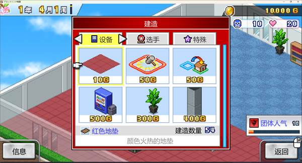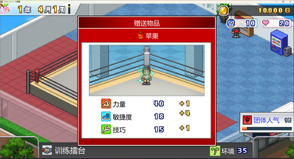 摔跤擂台物语中文版是一款非常不错的模拟经营游戏,英文名叫Pro Wrestler Story,玩家在游戏中将模拟经营一家摔跤馆,你需要合理购买放置相应的训练设施,以提升摔跤手的能力,最后打造出一个拥有最强摔角手的职业摔角团体。另外,摔跤擂台物语游戏内设计了超多训练设施,如卧推器、单杠、双杠、摔跤擂台等,玩家可不断增加训练场设备,制作销售产品,以及不断增加己方选手,然后挑战其他的摔跤团队。感兴趣的朋友还在等什么,快来下载体验吧!