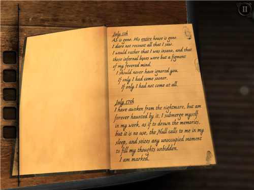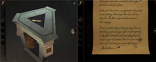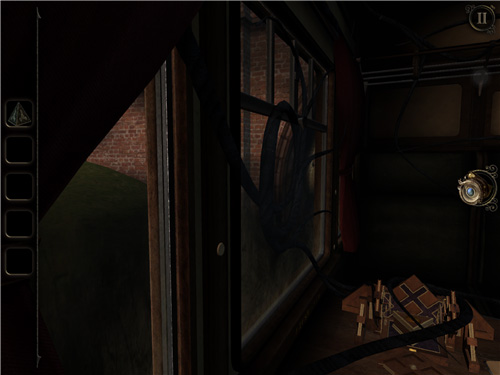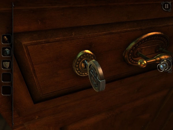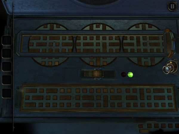也许你在一开始的时候就已经很在意,在图书馆里有一台标着“1795”的接听电话,但就是用不了。终于,它在此刻响了,你可以拨动它的开关,让旁边的录音机运作起来。接着你会获得又一个手柄,返回地窖,将这手柄放置于一个有着六个小柜的木柜中,拉动一下,木柜就会运作起来。