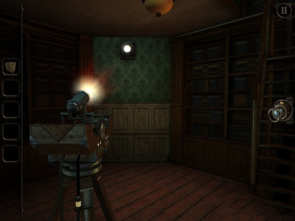 这个装置比较精密,转动一下上面的机关,它就会变成一条钥匙。获得钥匙后,移步至书房(第一个房间)探索未曾动过的书柜。