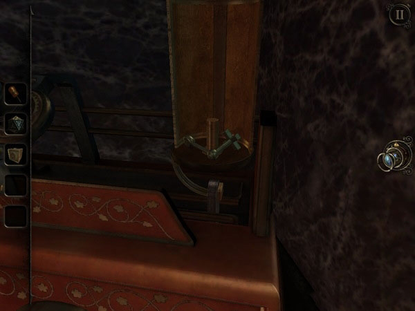 同样,回到塔罗牌游戏机前将硬币放于入口中,你可以得到又一个新的手柄。这个手柄是花房中播放机缺失的零件。将其放回到播放机中,拉动调整播放机的指针,直到播放机唱起歌来。此时,隔壁的电话已经可以正常使用,但先别急着用。