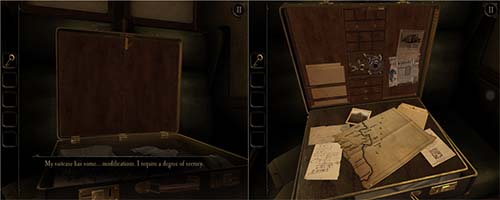 打开手提箱,打开上方夹层,拿到透视镜。(在屏幕右方会出现透视镜按钮)