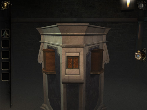 钟楼模型侧边有一个小棋盘,只要将右边一排棋子都打掉,即可获得一个金色小人;还有一个很有趣的,就是音乐盒解谜,将钟楼上获得的金色小人重装于音乐盒上并使其运动,可获得一个红色的宝石。
