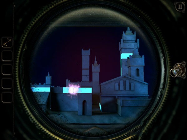 Chapter 2 的谜题类型非常多,其中包含了我们常见的小游戏。例如钟楼模型上的迷宫棋子,玩家需要利用左边与右边的滑动开关分别控制四枚棋子的滑动方向,使其最终到达四个方位的凹陷空位上。