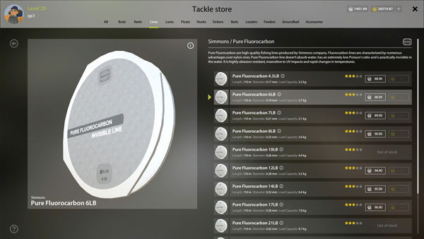 玩家可以在渔具和杂货店购物,在那里您可以购买到钓鱼所需要的一切物品。