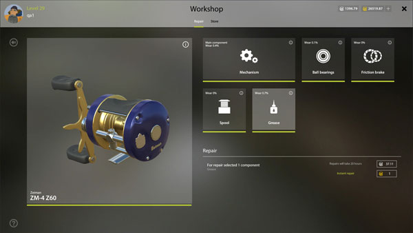 在维修窗口中,您可以查看渔具的状态。有关对象状态的详细信息,请用鼠标左键[LMB]点击它,然后打开此对象的所有组件的状态窗口。