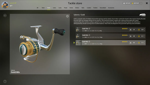 4、大量的渔具、设备和鱼类正在等待着你进入俄罗斯钓鱼4世界的旅程。