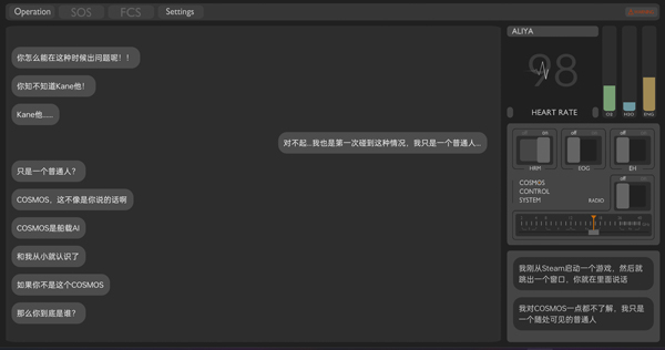 彼方的她是一款非常不错的文字互动视觉小说,英文名叫Aliya,玩家在游戏中因为一场意外连接了上千年以后一名在太空遇险的少女,为了帮助她在太空中活下去,你需要通过聊天了解彼此,聆听她的过去,最后发现背后的真相,创下独属于你们的一场奇幻冒险。