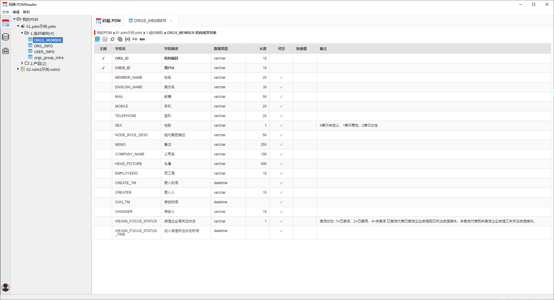 4、支持PowerDesigner 15.0保存的pdm文件。
