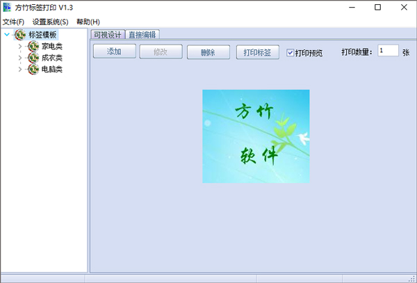 方竹标签打印是一款标签商品价格标签打印软件,具有强大的所见既所得设计标签功能,使您很快打出自己要的标签,内置多种行业标签模板。软件按国家标准条码设计,支持各种型号的条形码扫描枪识别。 本软件适用于中小型商场、超市、便利店、百货店、服装店、箱包店、精品、手饰、医药店、包装印刷、图书等等涉及到需要自己定义价格标签的行业。