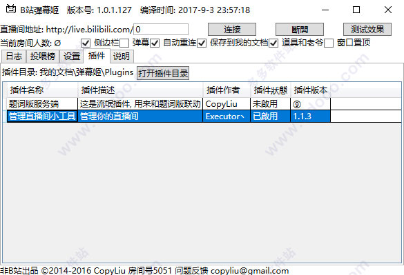 默认安装目录为:X:\我的文档\弹幕姬\plugins\