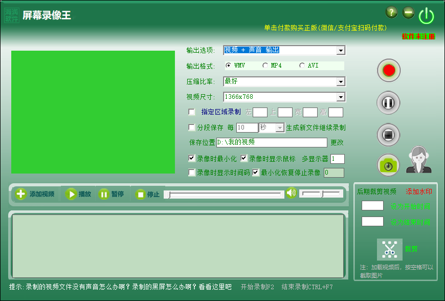 屏幕录像王是一款非常专业的屏幕录制工具,支持全屏录制或仅录制指定区域,支持视频+声音输出、仅视频输出、仅声音输出三种录制方式,可以很好的满足您对录制的需求。软件拥有视频添加、视频播放预览、视频截取等多种功能,让用户可以便捷高效的进行电脑屏幕录制。