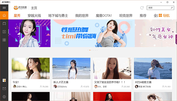 虎牙直播产品覆盖PC、Web、移动三端,拥有包括网游竞技、单机热游、手游休闲、娱乐综艺在内4大品类近300个特色频道,涵盖电子竞技、音乐、体育、美女、户外、真人秀、综艺、娱乐、美食等多元化热门内容。