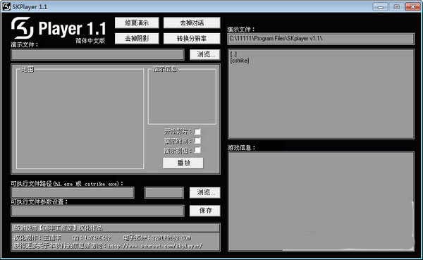 经常玩CS的玩家应该知道,在游戏的途中是可以通过录像来保存精彩的游戏过程,但要快速的观看这些录像就必须通过skplayer中文版。它是由SK.swe领队bds一手打造的视频播放软件,完美的支持了CS1.5和CS1.6,只需轻松几步即可快速的看到Demo格式中的地图和玩家的信息。如果你是一位CS的忠实玩家,那么skplayer绝对非你莫属。