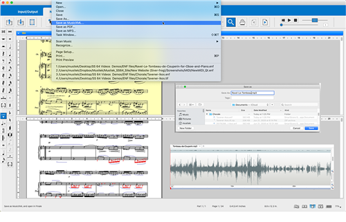 直接从 SmartScore 转置和打印。另存为 MIDI 或 MusicXML 并在 Finale、MuseScore、Sibelius 或任何其他支持 MusicXML 的乐谱程序中打开您的乐谱。导出到 Type 1 或 Type 0 MIDI 文件以及Yamaha 键盘的 XF MIDI 文件。 您甚至可以将播放转换为 MP3 文件!