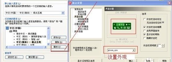 2、设置输入的各个选项。一般来讲默认的项不太需要改动。不过可以设置它的外观。