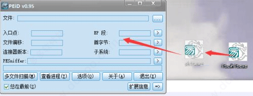 (在需要查壳的软件上面按住鼠标左键,再拖动你的鼠标的PEiD的窗口里,最后松开你的鼠标左键)