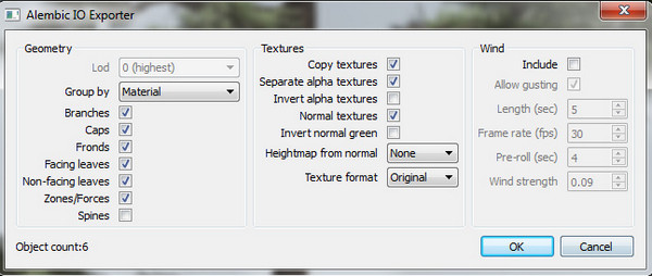 5、将树导出来为FBX,OBJ或ALEMBIC,用以一切DCC或渲染器。