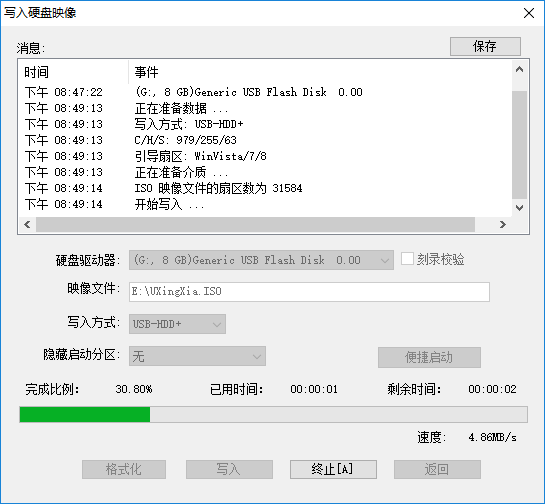 6、已经开始在制作ISO启动了,这需要一点时间,制作过程请勿操作与USB设备相关的软件,静候生成过程结束即可,如下图所示:
